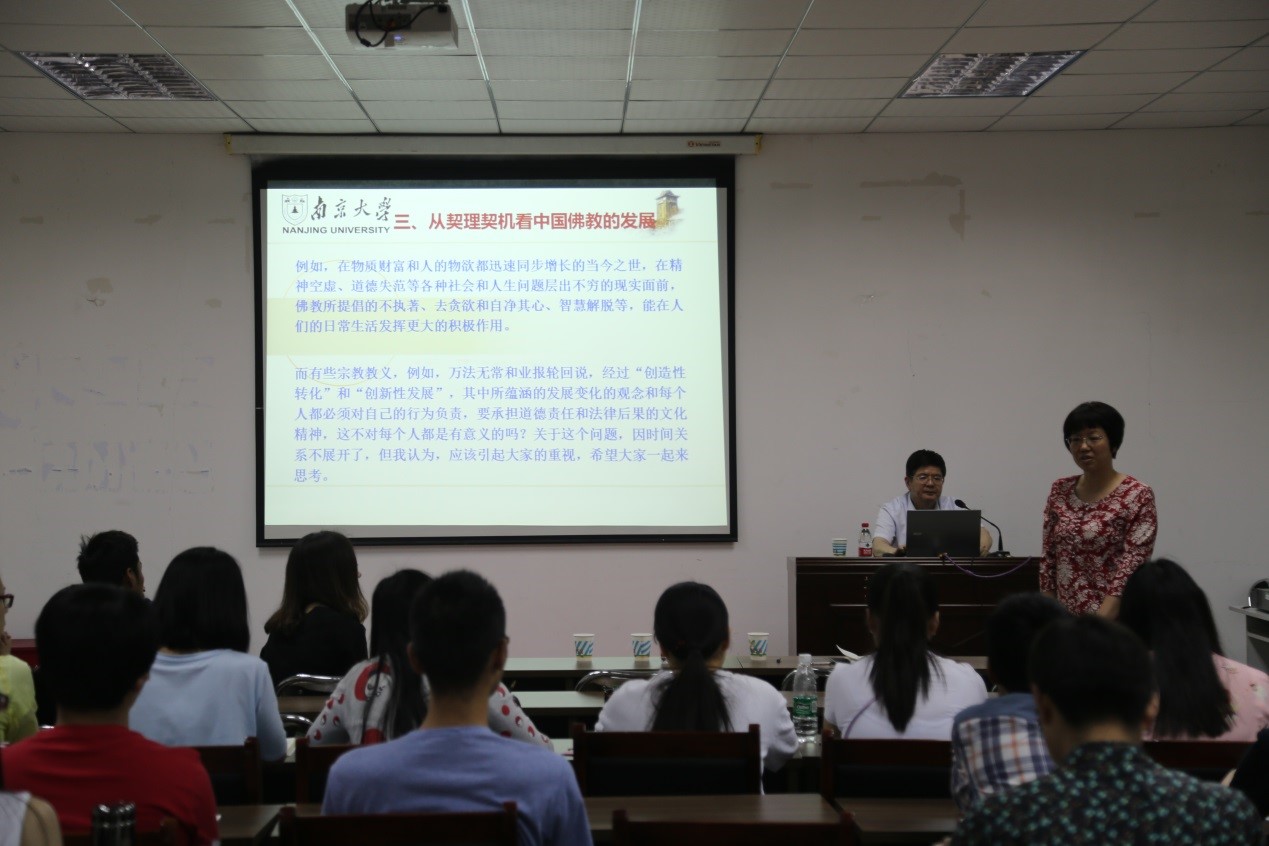 2017年5月24日上午,南京大学洪修平教授应邀来到公司,在公司三楼会议室,为公司师生主讲了题为 “中国佛教文化的特色”的学术讲座。公司哲学系朱丽霞教授参与讲座,哲学等相关专业本科生与研究生参会。