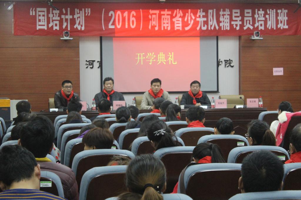 开班仪式由莫起升主持。广大学员代表向出席仪式的领导敬献红领巾,随后胡德岭致欢迎词。王笃波副书记结合党的十八代表大会以及习近平总书记重要讲话精神,立足于河南省少先队辅导员工作现状,肯定全省少先队工作围绕根本任务取得了新成果;强调全省少先队工作者要观大局明大势;要求少先队工作者要正确把握少先队工作要求,要求牢记责任使命,培育社会主义合格建设者和可靠接班人。他希望广大少先队辅导员提升政治素养、加强理论学习,明确新时期少先队工作的新要求新任务,推动全国全国少先队工作改革创新,不辜负团中央、团省委期望,能够提升自身理论基础,全面提高少先队工作专业能力和水平