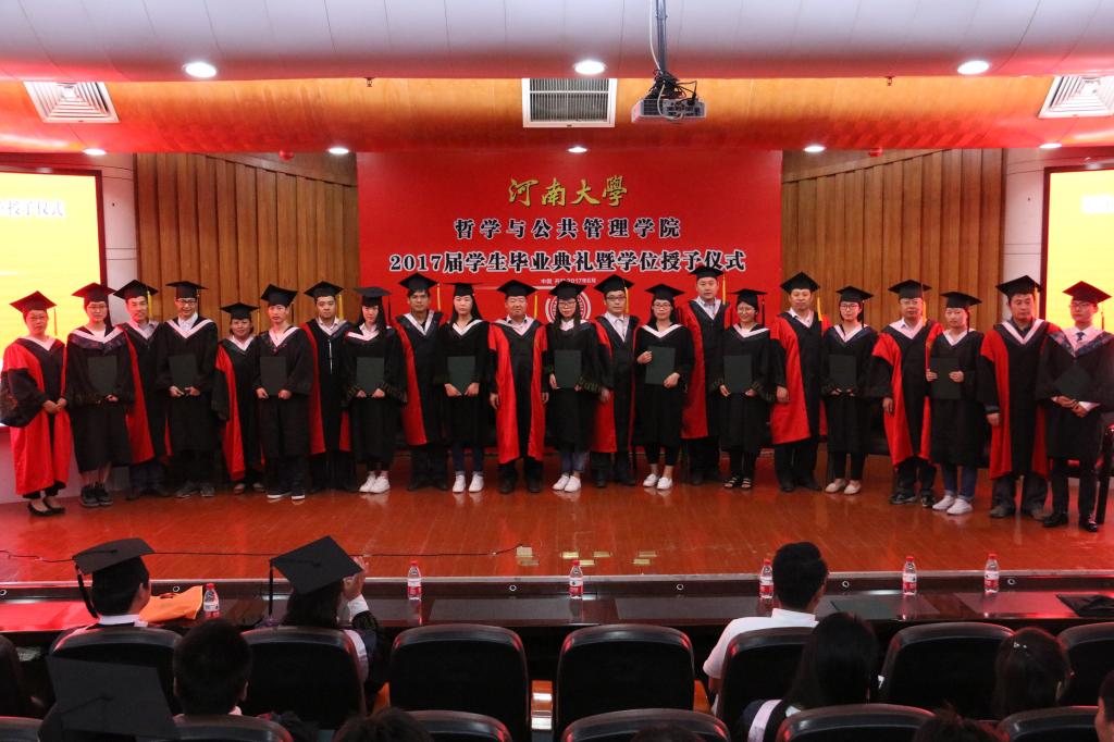 莫起升发表重要讲话。他向圆满完成学业的2017届毕业生表示热烈的祝贺,向为学子成才默默付出的老师、家长表示崇高的敬意和真诚的谢意。他说,四年的老员工活使同学们烙上了“河大印”,拥有了“铁塔牌”,积累了知识,砥砺了意志,凝练了品德,提高了能力,由懵懂青年成为祖国的建设者和未来的接班人。
