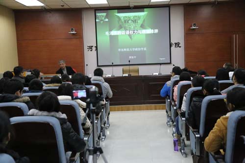 2014年12月23日上午,华东师范大学教授、博士生导师、著名毛泽东研究专家萧延中教授应邀在公司三楼大会议室做了题为“毛泽东的话语权力与政治修辞”的学术报告,公司哲学、政治学、马克思主义等相关专业师生参会,报告会由政治系何云峰教授主持。