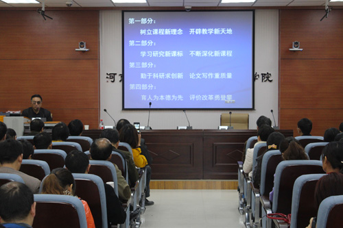 11月13日上午,河南省基础教研室文科一室主任、文科支部党总支部书记、特级教师王向阳在公司三楼会议室为国培学员做了以“深化课程改革,追踪学科前沿”为题的讲座。百余位中小学教师代表参加本次讲座。