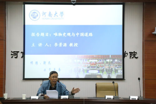 2014年11月14日晚,中国社会科公司哲学研究所所长、博士生导师李景源教授应邀来到公司三楼大会议室,为公司哲学、马克思主义相关专业师生主讲了题为“唯物史观与中国道路”的学术讲座,哲学系吕世荣教授主持讲座。