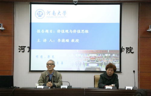 2014年11月15日上午,中国社会科公司李德顺教授应邀来到公司三楼大会议室,为公司师生主讲了题为“价值观与价值思维”的学术讲座,公司哲学、马克思主义相关专业师生参会,哲学系吕世荣教授主持讲座。