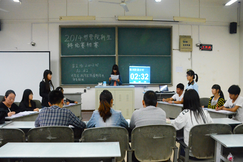 为保证今年辩论队队员素质,10月19日,公司在金明校区综合楼开展辩论队招新初赛选拔活动。公司辩论队长林歌、民生公司辩论队长王淙、工商管理公司辩论队长乔加力、文理实验班辩论队长王晓宇、以及辩论能手张兰担任本次大赛评委。