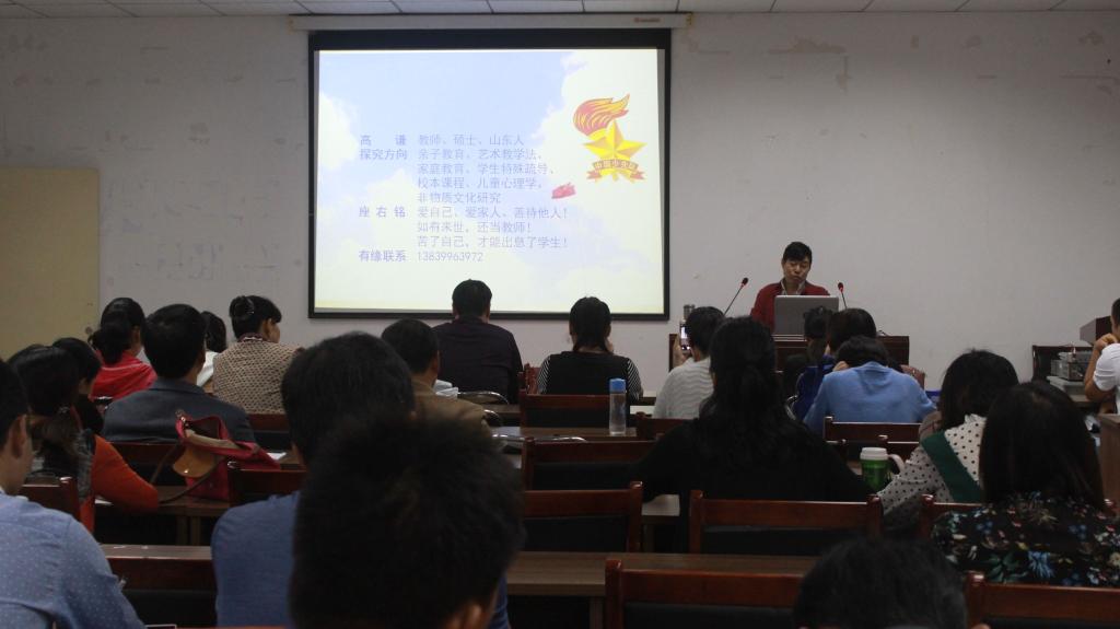 9月27日上午,全国十佳才艺教师、开封市家长公司董事长高谦老师主讲的“认识自己的队员”讲座在公司三楼会议室举行。国培计划少先队员辅导员培训班学员参加了讲座。