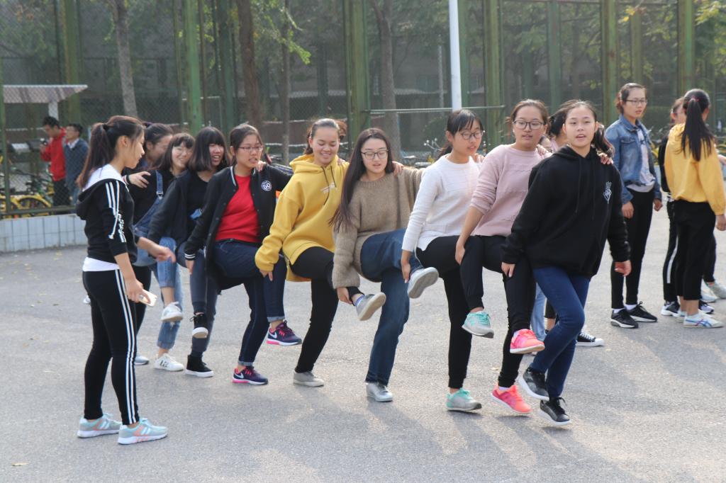所有参赛同学根据专业和社团被分为九支队伍,在团委员工会的组织下先后进行了“穿山洞”、“人体叠叠乐”、“齐心协力”、“夹乒乓球”、“连环呼啦圈”、“十人任意脚”等六个趣味集体活动。热身活动“穿山洞”中同学们手拉手穿过同伴的手环,很好地达到了预期的热身效果。“人体叠叠乐”活动通过汉字的摆与猜展现出了汉字的博大精深,锻炼了同学们的观察能力。“齐心协力”活动中同学们前后协调进行单腿跳接力,在欢声笑语中感受到了团队的力量。“夹乒乓球”活动考验了同学们的平衡能力,诠释了面对问题时冷静处理的重要性。“连环呼啦圈”活动节奏轻松,释放了同学们的压力。“十人任意脚”活动中各团队摆出不同动作使着地脚数最少,充满了奇思妙想。活动在集体合影中圆满结束。