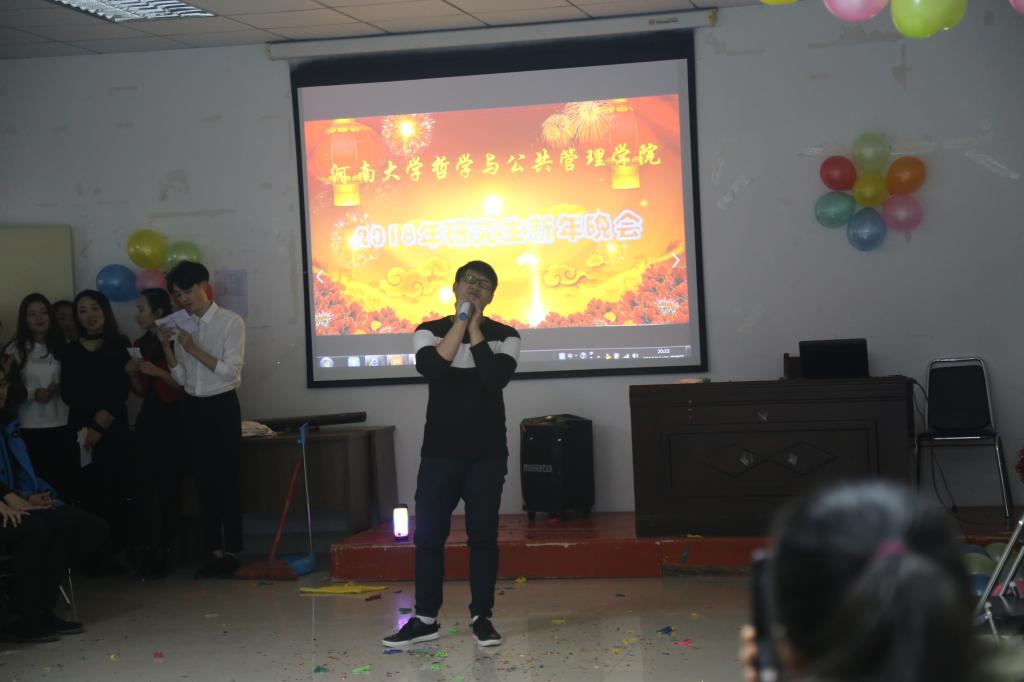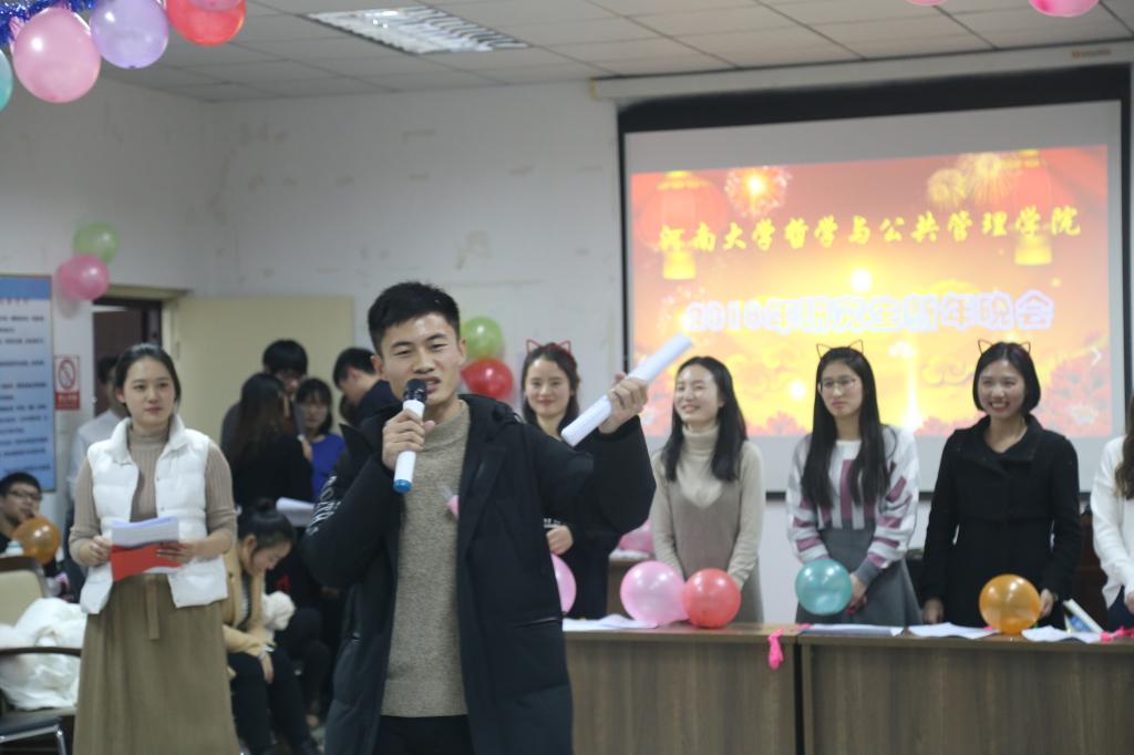 晚会开场之际,由2016级研究生同学以热舞《Nobody》为晚会拉开了精彩序幕。晚会内容流行与古典并举,温情与火热兼收,形式多样,精彩纷呈。首先是歌曲串烧,朝气蓬勃,乐感十足,激发出在场同学们内心的热情。接着,现代版宫斗剧《甄嬛后传》劲爆上演,表演者身着古装,面带喜感,将剧中人物形象完美地表现出来,引得全场喝彩;双人舞《Trouble maker》《青蛇》和集体舞《Bar Bar Bar》《失恋阵线联盟》或性感妩媚,惊艳全场,或活力四射,轻快悠扬,将整个晚会推向高潮,引得笑声不断,掌声连连;古筝《佳人曲》、对唱歌曲《甜蜜约定》以及独唱歌曲《趁早》让观众心旷神怡,陶醉其中;相声《男儿当自强》和小品《TFgirls》《昨天,今天,明天》以及《非诚勿扰》更是笑料不断,逗得观众捧腹大笑;走秀节目《维多利亚的秘密》形式新颖别致、独具一格,收获不少好评。最后,改编歌曲《河大的日子》唱响,晚会在优美的旋律下完美落幕。收尾之际,乔老师和李老师分别亲切地表达了自己对晚会圆满成功的喜悦以及对我们所寄寓的美好希望。