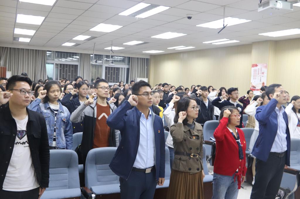 全体学员庄严举起右手,重温入团誓词。嘹亮的共青团团歌为开班仪式画上句号。