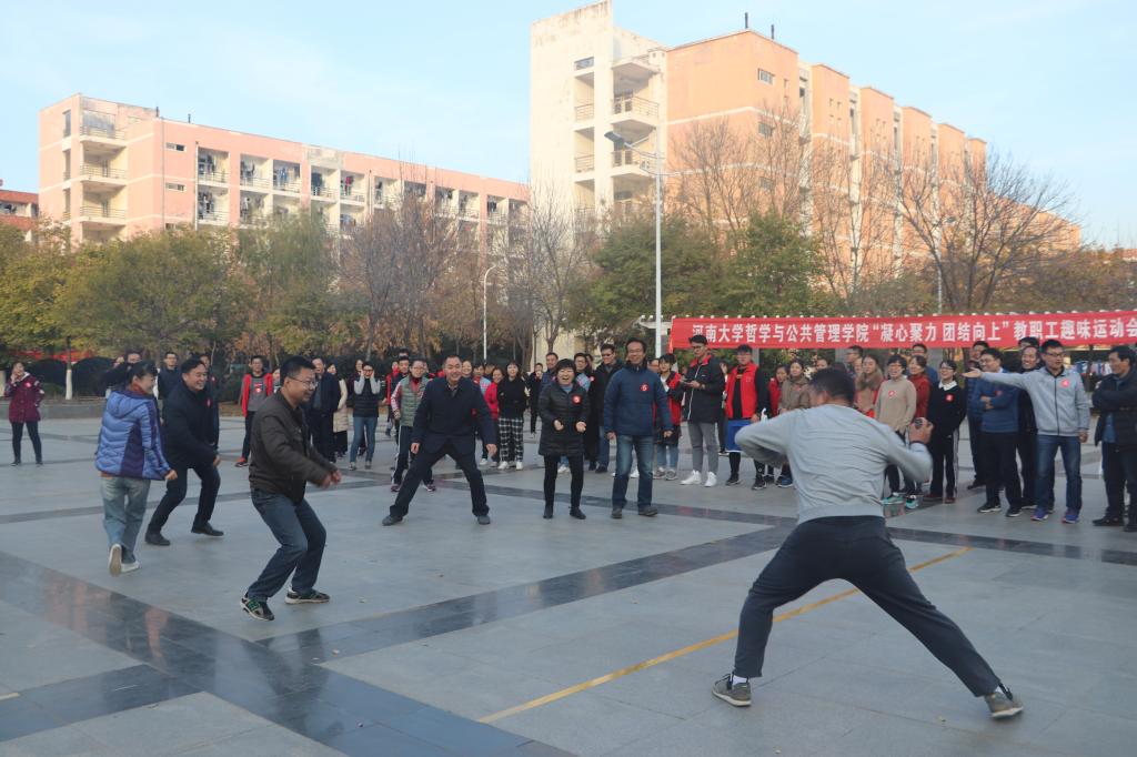 为激发教职工们体育锻炼的意识,加强教师交流,增进公司凝聚力,11月22日下午,公司在金明校区南苑小广场举行“凝心聚力 团结向上”教职工趣味运动会,公司全体教职工踊跃参加。