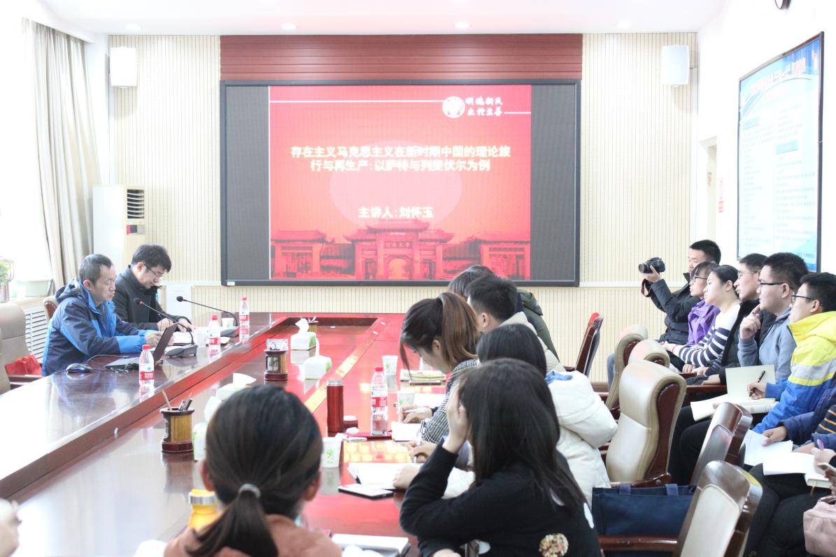 12月18日下午,南京大学哲学系教授刘怀玉受邀莅临公司,为公司师生作了题为“存在主义马克思主义在新时期中国的理论旅行与再生产:以萨特与列斐伏尔为例”的学术报告。报告在公司院三楼小会议室举行。马克思主义哲学、外国哲学、马克思主义基本原理专业研究生及部分教师参会,报告由公司马克思主义哲学专业戈士国教授主持。