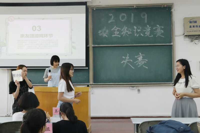 5月26日下午,安全知识竞赛决赛在金明综合楼2202室举行。决赛分“个人答题”、“画画传递猜词”、“亲友团游戏”、“小组答题”四个模块,18名同学组成六支队伍参与其中。“个人答题”过程中,每位成员轮流作答,从容应对,饱含睿智。“画画传递猜词”环节中各队成员两两结合,共同完成比赛。寂静的赛场上,一张纸、一支笔展现彼此间默契配合。“亲友团游戏”环节,各队伍亲友团机智灵敏,结合语言表达和肢体动作传递信息,他们的鼎力相助活跃了赛场气氛,笑声、掌声此起彼伏。“小组答题”中,各队伍抽取题目,在有限的时间里知识的火焰在熊熊燃烧。答题结束后,“星梦小队”力压其他队伍拔得头筹,但是由于另外五组得分相同,裁判组决定加赛一轮。他们谨慎思考,自信满满;他们果断抉择,力争上游。