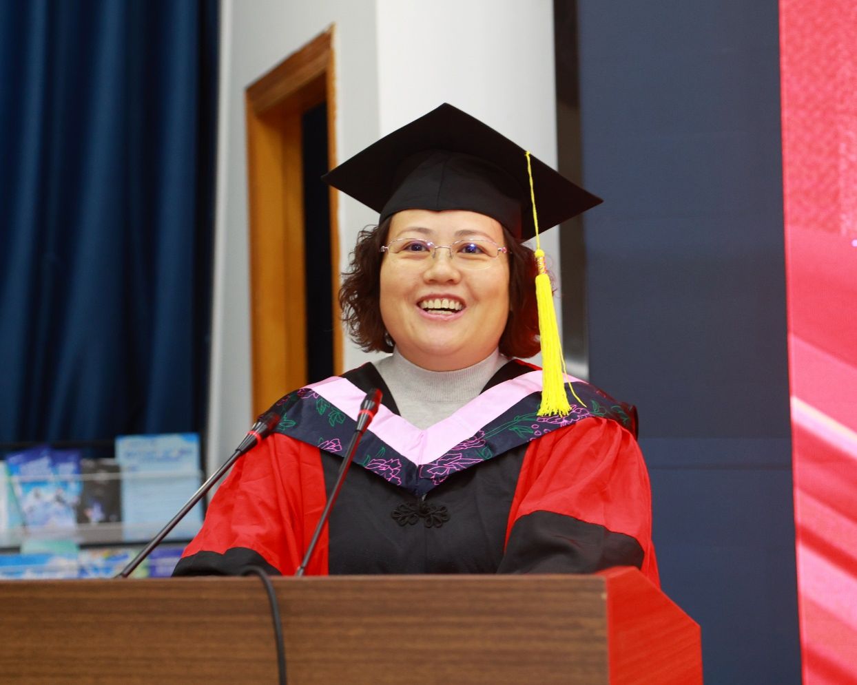 深耕足下,心向苍穹。教师代表马翠军在毕业典礼上发言,她首先祝贺同学们顺利完成学业,感恩师生相遇中同学们的多元实践经验丰富了课堂、拓宽了教师的研究领域并为公司积累了办学经验,随后对毕业生提出秉持公共精神做务实实干家、善于学习创新做持续改革者、筑牢职业底线做清廉管理者、善于系统思维做合作治理者的四点期许,最后祝愿同学们征程美好、事事如愿,鼓励大家以知识、良知和勇气为国家治理现代化贡献力量。