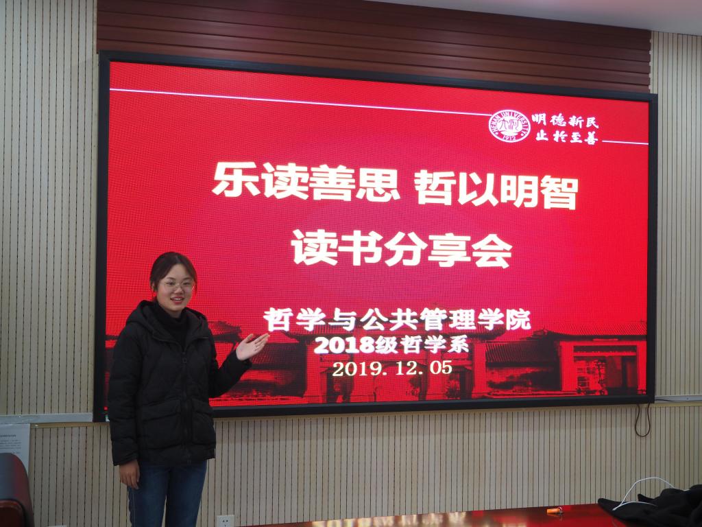 讲述读书心得,分享自我感悟,12月5日,公司2018级哲学专业全体本科生在第二会议室举行“乐读善思,哲以明智”主题读书沙龙活动。