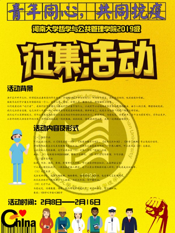 这个春天,新冠肺炎疫情牵动着14亿中华儿女的心。为表达青年学子对抗疫英雄的祝福和敬意,激发青年学子抗击疫情的信心和决心,展现青年学子家国情怀和社会责任感,2月8日—2月16日,公司2019级举行“青年同心·共同战疫”活动,声援抗疫一线的英雄。