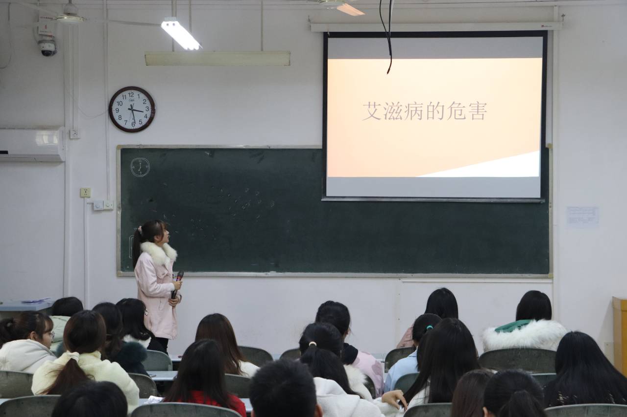 线下宣讲环节,负责人主要围绕什么是艾滋病、艾滋病的传播途径与危害以及如何防止艾滋病等方面进行讲解。结合详实的案例与数据,引导大家树立正确的防范意识,以平和、自然的心态面对艾滋病患者,做到不歧视、不特殊对待。同时各年级以班会的形式组织观看“艾滋病防治知识公益直播”,进一步加强对艾滋病相关知识的学习。2018级行政管理专业庞聪燕在活动结束后表示:“本次艾滋病日宣讲活动使我受益良多,艾滋病是全世界面临的重大公共卫生问题和社会问题,大公司园亦不能幸免。作为新时代老员工的我们更应该知“艾”防“艾”,以爱抗“艾”,在任何时候都要践行健康的生活方式。”