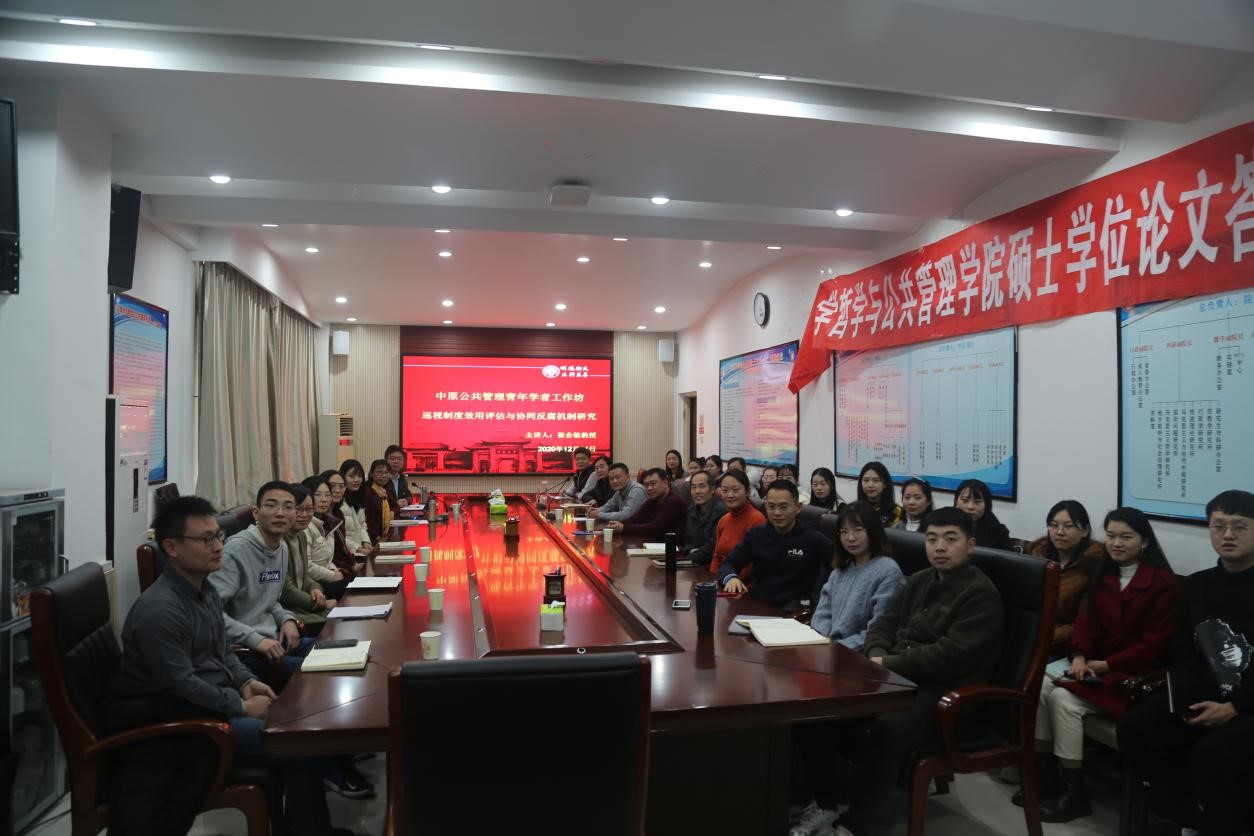 12月24日上午,中原公共管理青年学者工作坊在公司三楼小会议室举行,公司行政管理系崔会敏教授应邀作了题为“巡视制度效用评估与协同反腐机制研究”的学术讲座。此次活动由公司行政管理系主任刘辉主持,公共管理专业青年教师及部分研究生共同参加了此次活动。