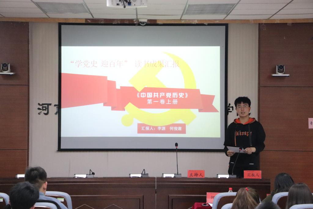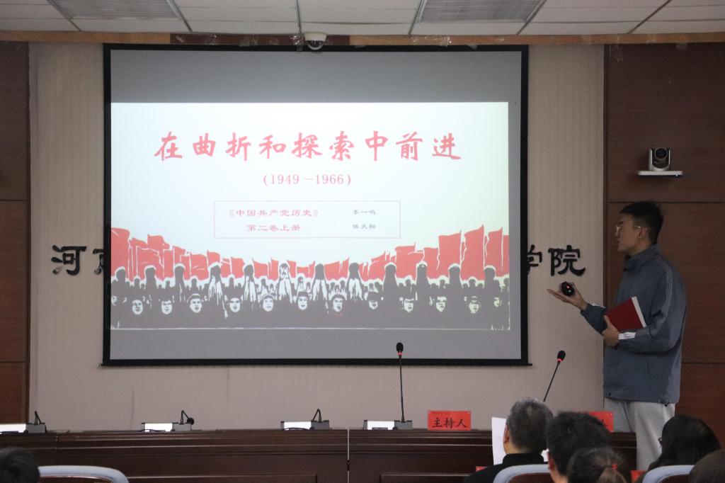 披荆斩棘,终见辉煌,由社会工作专业的任韶飞和哲学专业的陈令胜带来的《领航——从一大到十九大》深情讲述了中国共产党从一大到十九大的风雨艰辛和伟大成就;行政管理专业的廖曼君和邱晨阳带来《苦难辉煌》一书,生动描绘了长征的伟大历程,再现了中国共产党从成立到创建人民军队的奋斗历程;“共产主义的幽灵,在欧洲徘徊”,社会工作专业的王倩和行政管理专业的范兴玉带来《共产党宣言》一书,重现了173年前的光辉思想,指明了共产主义者前行的方向。其余四组分别介绍了《中国共产党历史》系列书籍,重温百年历史,传递伟大精神。