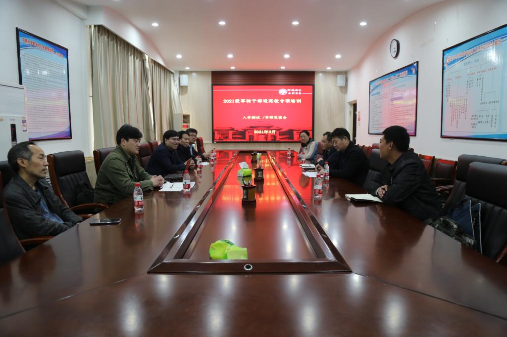 3月15日下午,公司2021级军转干部进高校专项培训导师见面会在公司三楼第二会议室召开。公司副经理蒋军营、田丰韶,公司成教办公室主任丁玲红,行政管理系刘辉老师、政治系孙艮陶老师、社会工作系付光伟老师以及三位军转干部学员出席本次会议。
