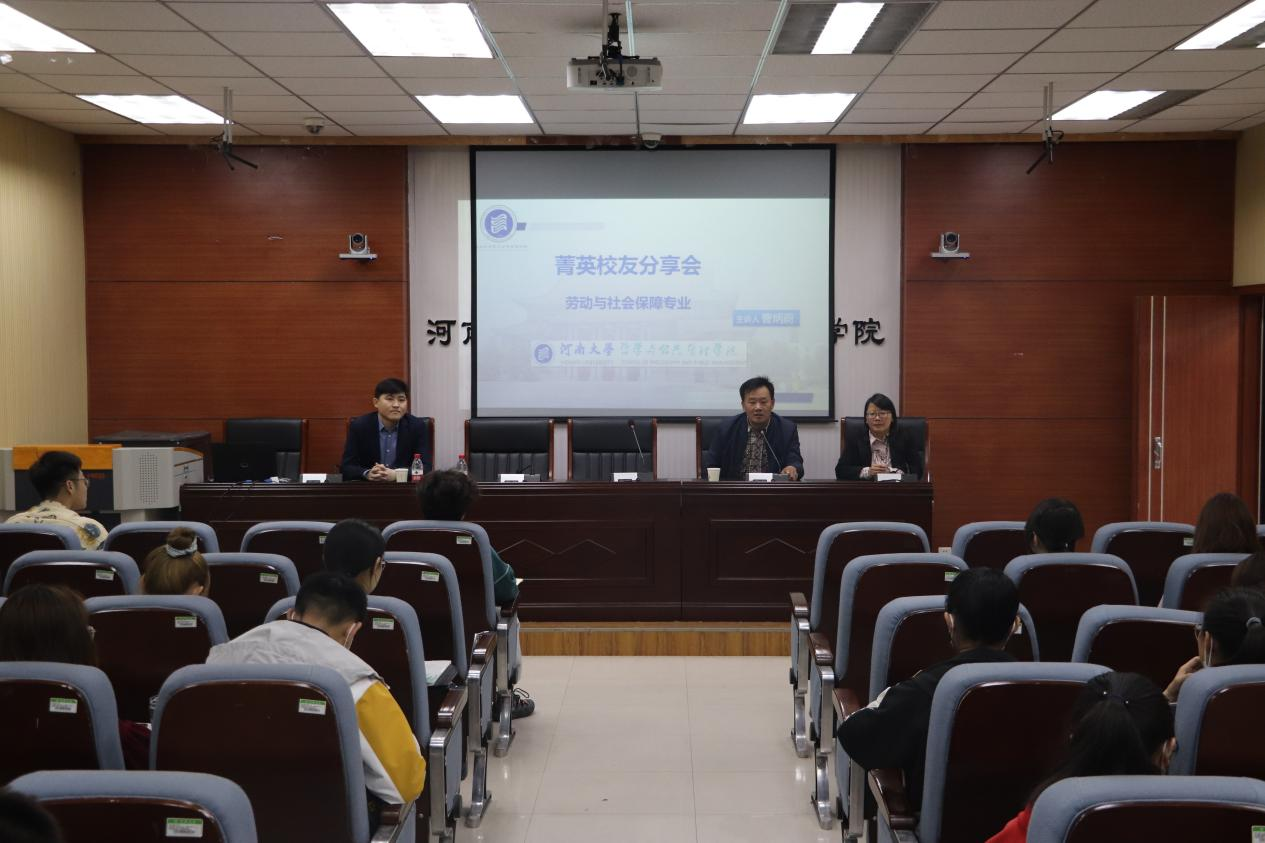 4月19日,公司于院楼第一会议室举办菁英员工分享交流会,2012届劳动与社会保障专业菁英员工、现任中建七局土木工程公司人力资源部经理的曹炳蔚受邀出席,并以“鹰击长空,规划未来——规划人生让梦想启航”为主题向公司学子作经验分享,公司党委副书记骆春丽,劳动与社会保障系教授凌文豪出席本次交流会,公司两百余名员工到场参加。