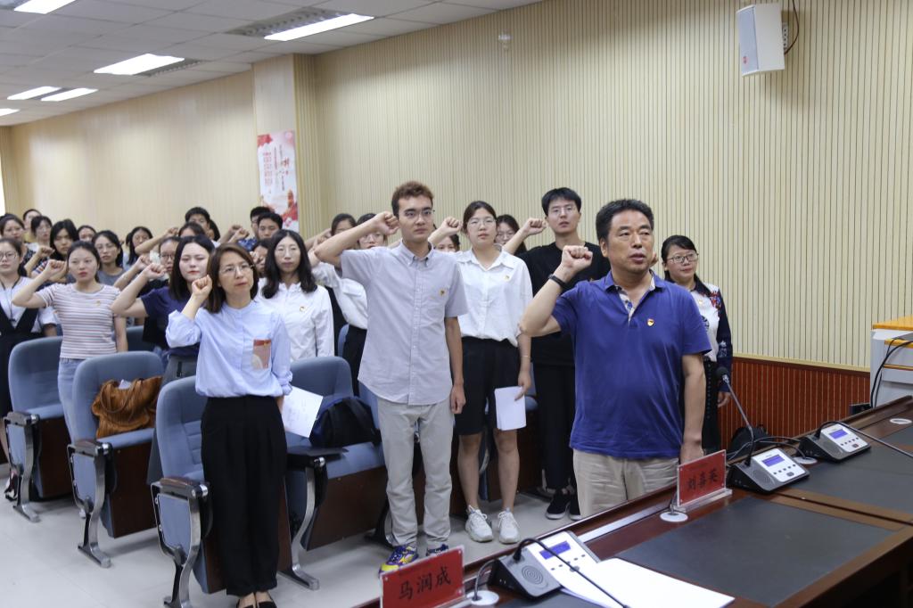 正式党员代表研究生余蕊同志表示将会不断提升思想政治修养,充分发挥党员先锋模范作用,练就过硬的专业本领,展现新时代员工党员风采,为党和国家贡献自己的青春和力量。新党员代表2019级本科生王倩同志表态发言,她表示作为一名新发展员工党员,要爱党爱国,坚定理想;要虚心学习,勤于思考;要踏实肯干,勇挑重担。时刻牢记责任与使命,积极为同学作出表率,争做优秀共产党员。入党积极分子代表2020级本科生李相云同学表示将致知力行,在实践中坚定理想信念,在课业学习中扎实专业基础,争取早日加入党组织。