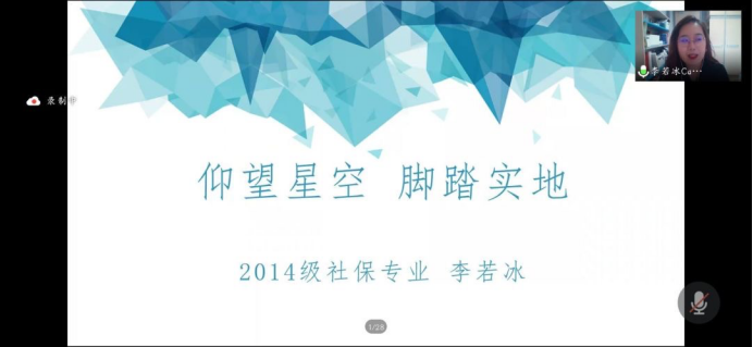 2018届劳动与社会保障专业李若冰(现为香港中文大学社会保障专业博士生)以“仰望星空,脚踏实地”为主题,旁征博引,用浅显易懂的语言,为新生们描绘社会科学领域的星辰大海,加深了新生们对本专业的理解;与此同时,她指出,本科阶段既要仰望星空,更要脚踏实地,养成好的学习习惯,做好积累,才能书写属于自己的人生华章。