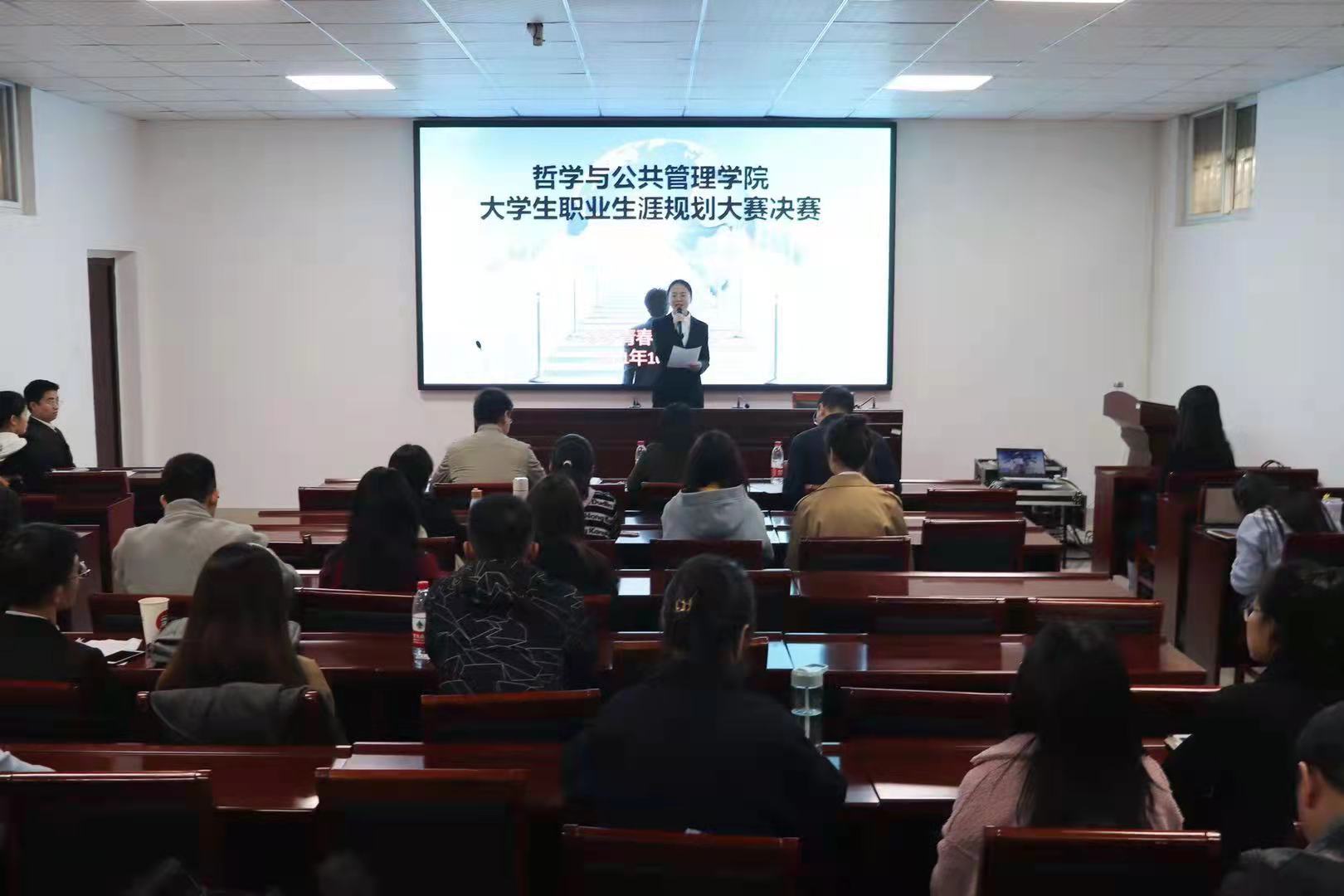 规划引未来,情景展风采,答辩现实力。决赛分为PPT现场展示、职业角色情景模拟和答辩三个环节。参赛选手从自我认知、工作环境认知、目标确立、行动计划、调整措施等方面展示阐述自己的职业生涯规划,整个过程思路清晰、规划合理、表达流畅。在决赛首次设置的职业情景模拟环节中,同学们紧紧抓住目标职业模拟的机会,不仅呈现了一场精彩绝伦的表演,而且锻炼了自身解决实际问题的能力。答辩过程中,评委们结合生涯规划书和现场阐述对选手进行针对性提问,选手们自信大方,机智应答,赢得了现场观众阵阵掌声,比赛现场气氛热烈。2019级行政管理专业王笑笑将公务员作为自己的职业目标,从自我评估到调研采访,扬长避短是她对自己职业选择的诠释。面对人民群众的问题,及时沟通、纠错、解决、反思更是她在情景剧角色扮演中对目标职业的理解。2020级劳动与社会保障专业郑东博从自我理想、家庭期望、社会认知出发,激情洋溢地讲述自己的高校教师职业理想。情景剧中,他借助高校教师的身份惟妙惟肖地向我们展示了一名高校教师平凡的一天,表达了自己对此职业的敬意。