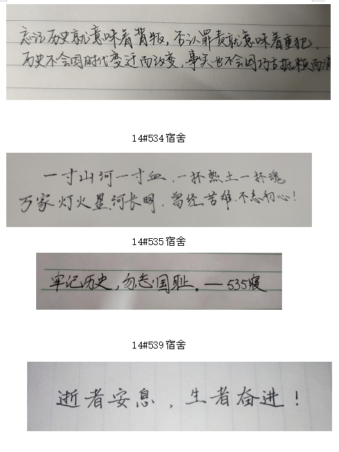 国家公祭日是站立在大地上的记忆,是在告诉世界且提醒后人,渴望和平、走向复兴的中国人民,绝不会淡忘那些沉重痛苦的记忆。拒绝历史悲剧重演,就必须推动祖国走向繁荣富强,我们每一个人都应牢记神圣职责,砥砺前行、自立自强,化历史悲痛为奋进力量,为实现中华民族伟大复兴贡献青春之力!
