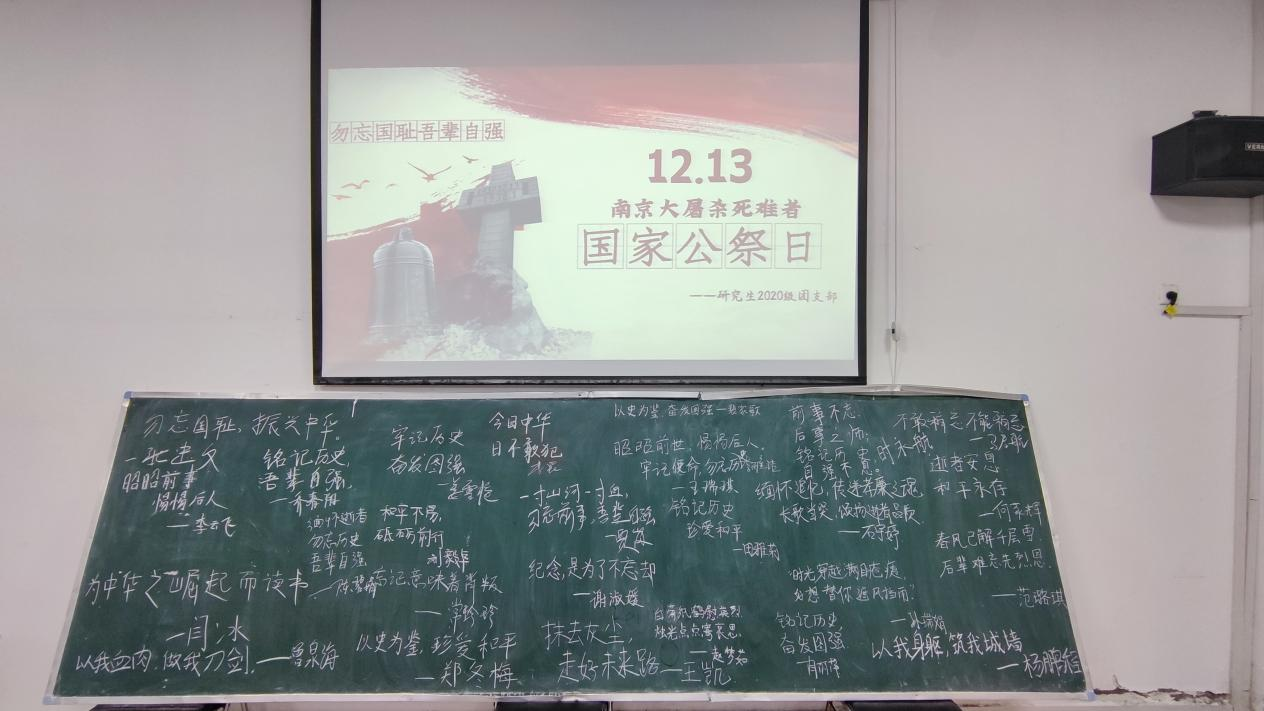 各团支部立足于南京大屠杀的历史节点,带领全体团员从南京大屠杀的历史情状、相关资料,国家公祭日的正式设立、现实意义等四个方面对其进行了深入学习,让全体团员认识到南京大屠杀体现出的日军暴行、战争无情以及和平不易;进一步促使全体团员青年增强个人历史使命感、时代责任感,从而更加充分地发挥广大团员青年在“勿忘国耻,吾辈自强”中的主体能动作用。