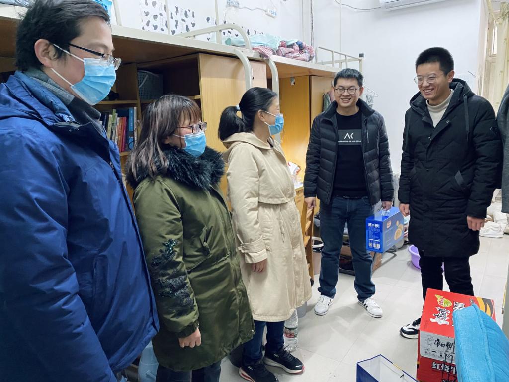 在员工宿舍,骆春丽与留校员工亲切交谈,她仔细询问每一位留校员工的学习生活状况,了解他们的留校安排,倾听员工的心声和需求,叮嘱大家遵守防疫要求,合理安排假期生活,经常与家人联系。辅导员老师也对同学们的日常生活表示关注,询问“食堂的饭菜怎么样?”“还存在哪些困难?”“记得按时打卡签到”“一定要注意安全!”……声声叮咛入耳,丝丝关切暖心,给留校同学送来了冬日的温暖。