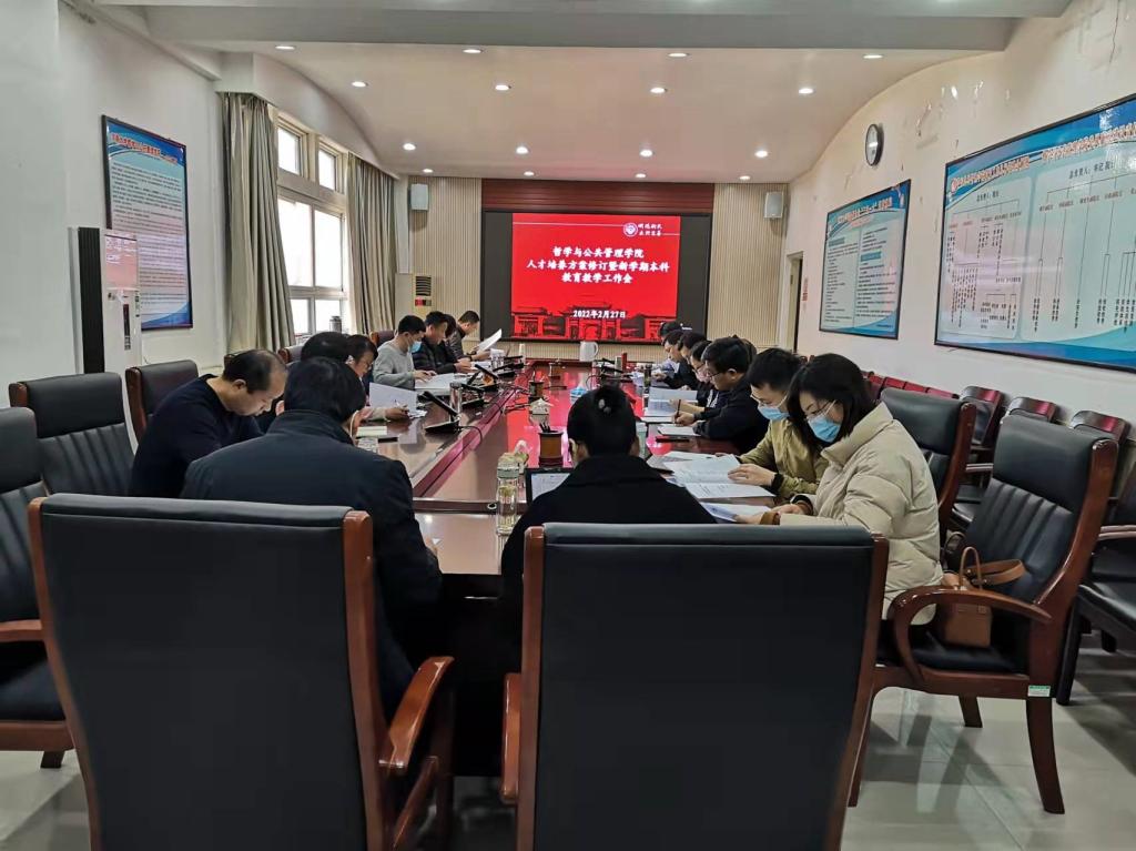 首先,田丰韶通报了本学期本科公司产品的重点任务,针对课程思政建设、公共管理与社会服务案例大赛、招生工作、教师教学技能竞赛等重要工作做出安排。随后围绕专业人才培养方案进行专题研讨,行政管理、劳动与社会保障、社会工作和哲学系系主任分别就培养方案修订的指导思想、依据、过程、遇到的问题及解决办法等四个方面依次进行汇报。与会人员就各专业人才培养目标、课程设置、实践环节等内容进行广泛讨论。