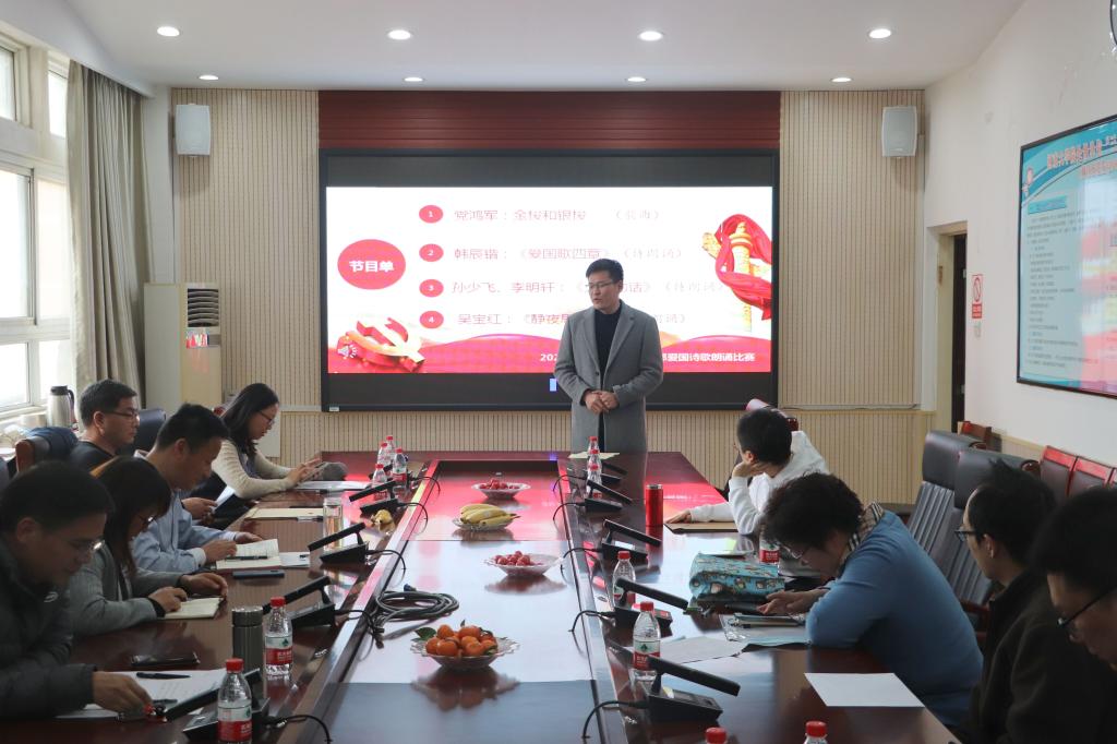 韩辰锴铿锵有力地朗诵了《爱国歌四章》,深刻表达了浓浓爱国情;孙少飞、李明轩抑扬顿挫地齐声朗诵了《太阳的话》,深情讲述了人民开辟光明的决心;李胜辉声情并茂地朗诵了《从军行》,用真挚的感情诉说了对祖国的无限热爱;赵海瑞深情款款地用诗歌讲述了建党一百年的故事,使大家如亲临了祖国的巨变;王建刚热情澎湃地朗诵了《伟大的旗帜》,使大家真正领略到了理想信念的指引力量;焦卫华用饱含深情的语调朗诵了《我爱这土地》,深切表达了中华儿女的拳拳赤子情。一首首作品经过精心的准备,抒发了充沛的情感,会场气氛高涨。