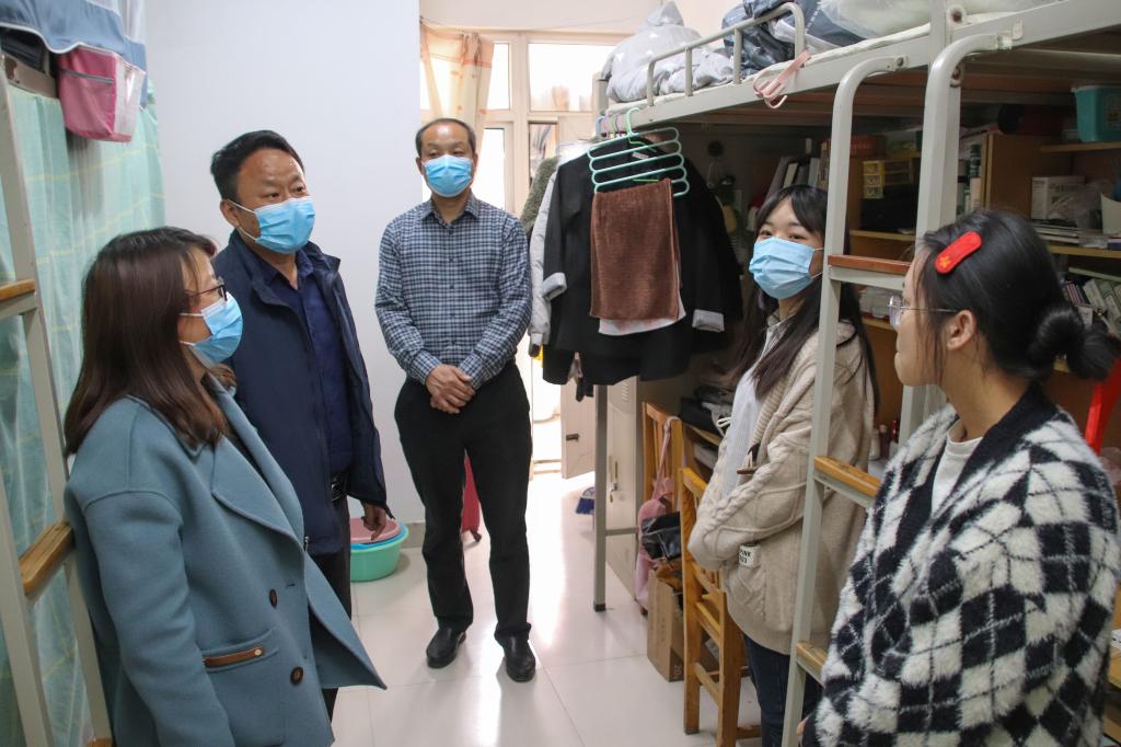 会议结束后,公司领导一行深入员工宿舍进行走访调研,耐心了解同学们的校园生活现状,叮嘱大家要服从公司管理,勤洗手、常通风、戴口罩、少出门、不聚集,注意宿舍卫生和自我防护,保持身心健康,有问题及时反映。