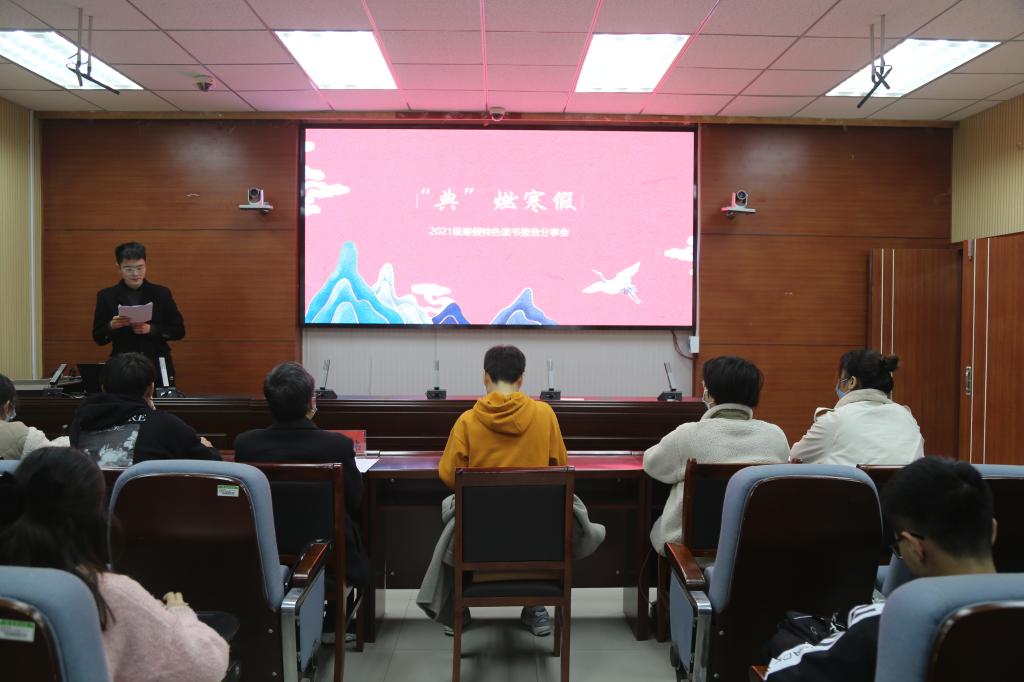 读万卷书,行万里路。3月17日,公司2021级本科生于第一会议室举办“典”燃寒假读书汇报决赛。社会工作系付光伟老师、哲学系杨红玉老师、2021级本科生辅导员贾银兰老师到场指导并担任评委。