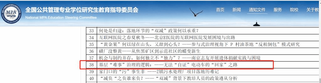 近日,第六届中国研究生公共管理案例大赛100强名单公布。公司刘辉教授指导、“锦鲤逐梦”研究生团队合作完成的参赛作品《基层“难事”治理的逻辑——无法“自证”电动车的“回家”之路》进入100强。