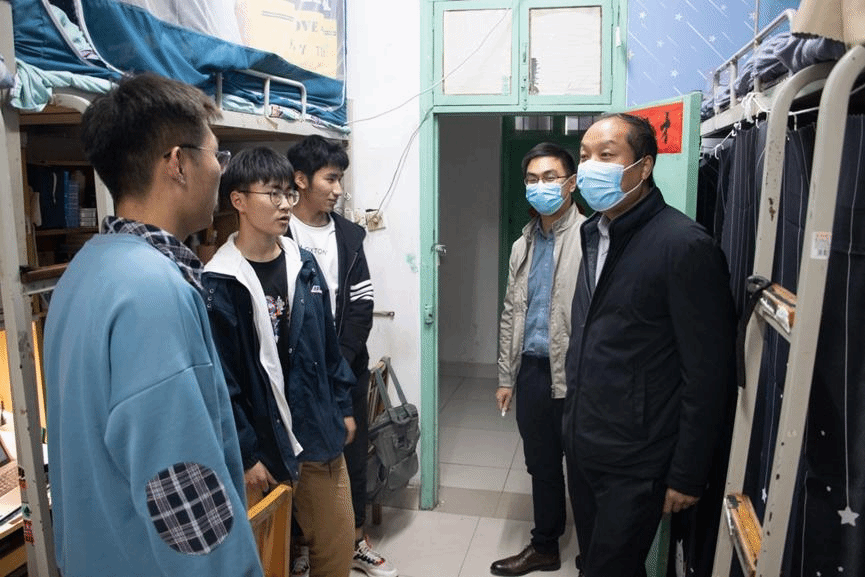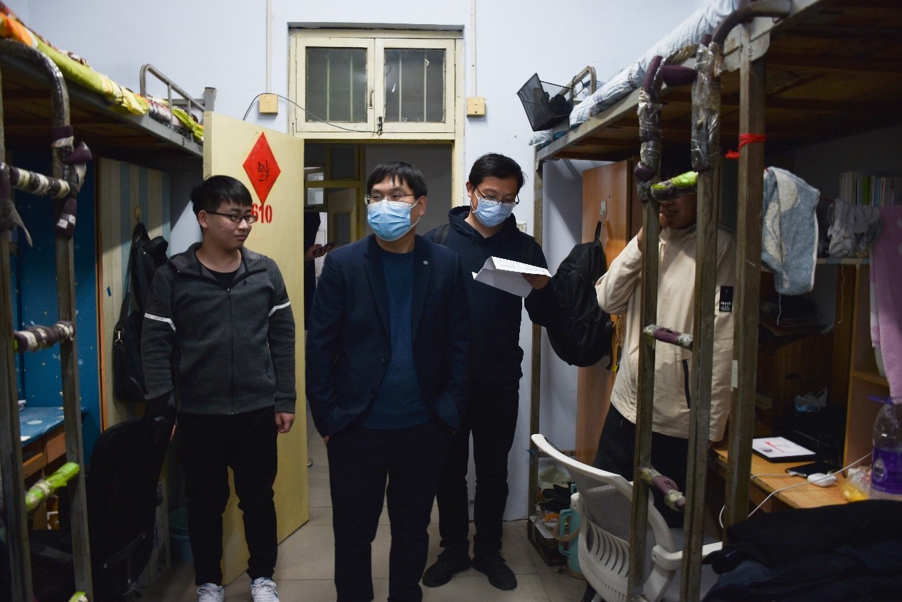 为进一步推动公司疫情防控工作落细落实,强化员工防疫安全意识,关爱员工心理健康状况,公司党委书记党鸿军、公司党委副书记骆春丽、副经理赵炎峰、副经理马翠军、副经理田丰韶和副经理齐月祥一行,分别于4月11日、14日前往综合教学楼、员工宿舍检查员工疫情防控工作,关怀问候员工。