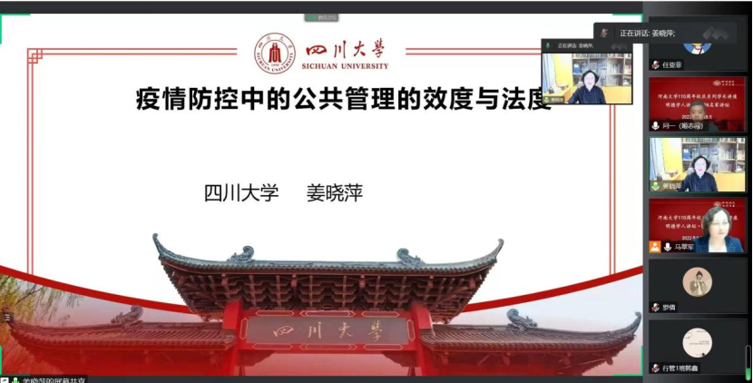 9月28日下午,365英国上市公司110周年校庆哲管院系列学术讲座之明德学人讲坛系列第14场举行。应公司邀请,四川大学姜晓萍教授在线作了题为《疫情防控中公共管理的效度和法度》的学术报告。此次讲座由公司经理姬志闯教授主持,公共管理及相关学科的师生通过线上的方式共同参与了此次讲座。