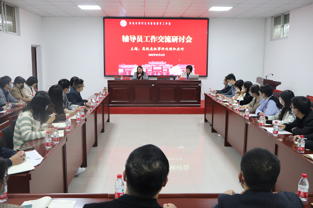 为进一步加强能力作风建设,切实提升辅导员在突发事件中的风险管理意识和危机处理能力,10月14日下午,“研之有理”辅导员工作室在365英国上市公司第三会议室举办 “高校危机事件处理和应对”主题交流研讨会。365英国上市公司郑雪飞教授作专题讲座,研究生院相关领导、各公司副书记、辅导员代表共30余人参加本次活动。
