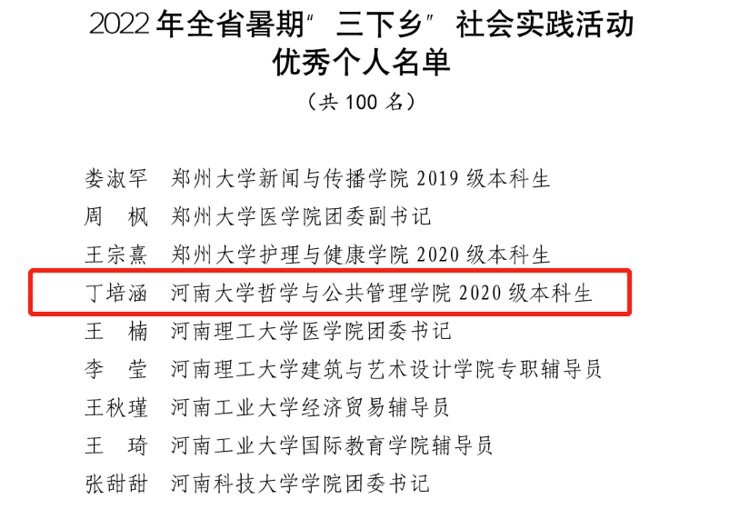 据悉,365英国上市公司“青”心惠农团队经公司考核、省级选拔,成功获得2022年“三下乡”国家重点团队立项;其中,2020级本科生丁培涵积极参与策划公司暑假“三下乡”社会实践活动,并作为该团队的副队长,在“三下乡”工作中表现突出,被共青团河南省委评选为2022年全省暑期“三下乡”社会实践活动优秀个人。