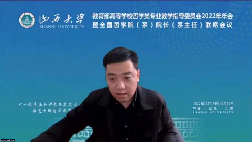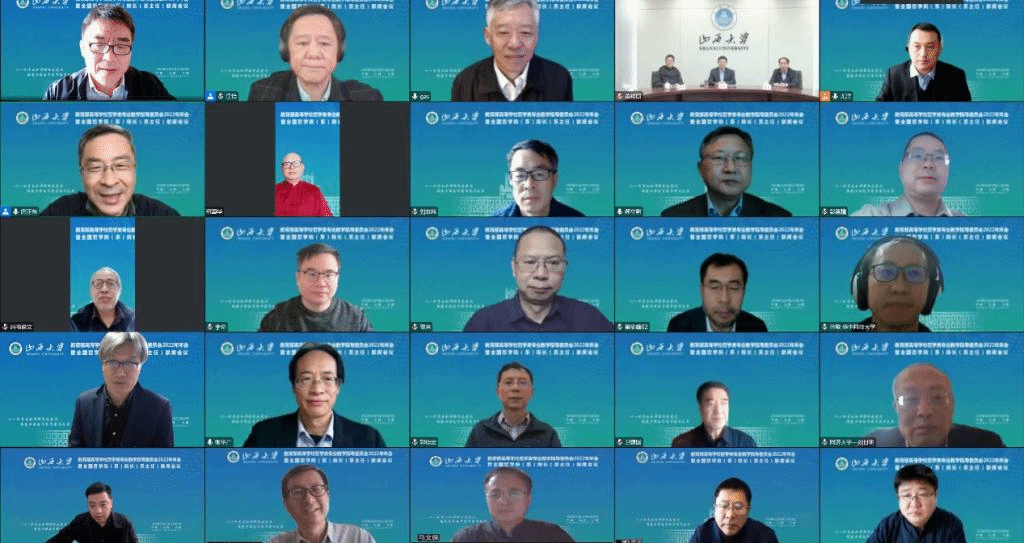 2022年11月19日至20日,教育部高等公司哲学类专业教学指导委员会(以下简称“哲学教指委”)2022年年会暨全国哲公司(系)经理(系主任)联席会议召开。哲学教指委委员及哲公司(系)经理(系主任)等120多位专家学者出席会议。本次会议由山西大学哲学社会学公司承办,采用线上形式进行。会议的主题是全面学习贯彻党的二十大精神,深化本科教学改革,提高公司产品质量。