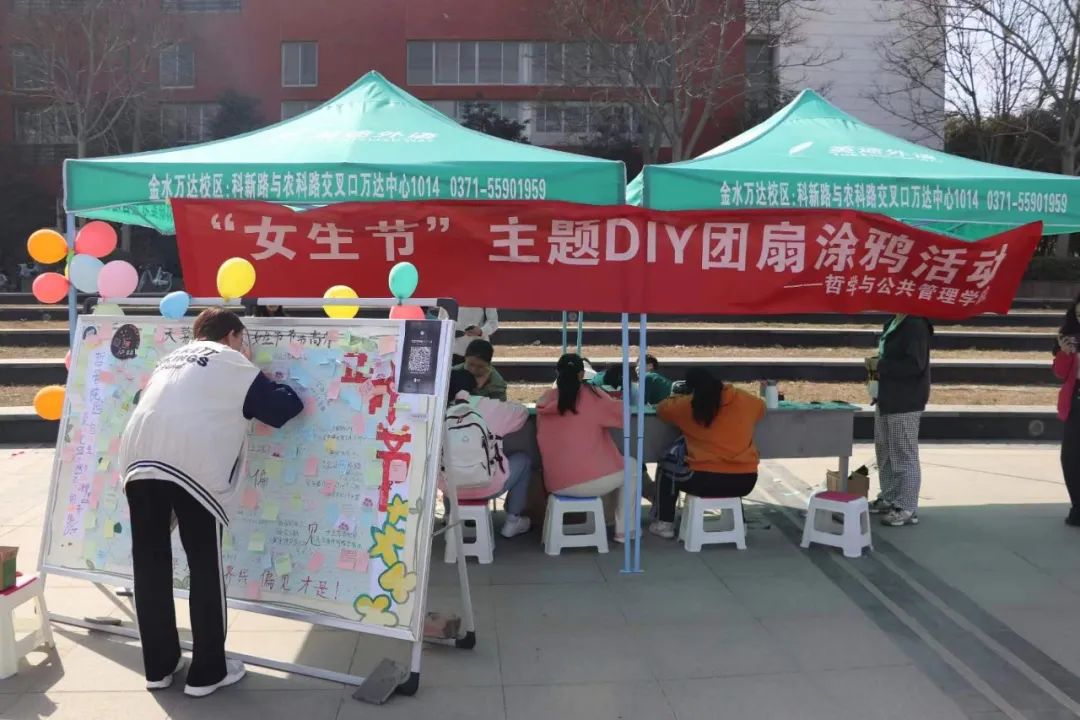 春天到,芳华至,又是一年烂漫时,一年一度的女生节如约而至。在第113个国际劳动妇女节来临之际,为倾听不一样的大学女声,公司于下沉广场准备了“女生节”主题DIY团扇涂鸦活动。