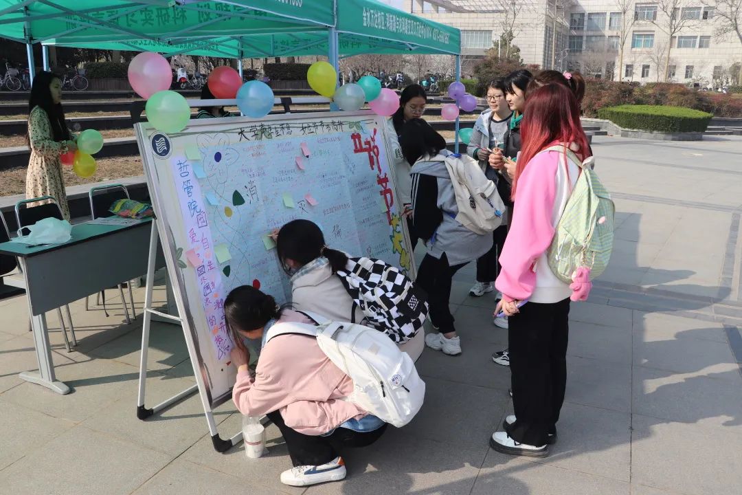 纸短情长,扬女性风采。“消灭偏见 爱自己是终身浪漫的开始”,载着娟秀祝福的卡片或贴在“偏见墙”上,展现打破偏见的独立与力量,或挂在空中,伴随三月春风将祝福传至更远方。女生们挑选心仪的故事与祝福留下合照,传递美好祝愿,尽显女生风采。