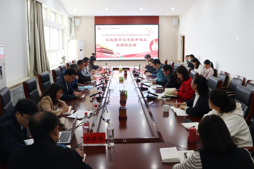 为学习贯彻习近平新时代中国特色社会主义思想,全面贯彻落实党的二十大精神,扎实开展主题教育,5月10日上午,公司在第二会议室举行学习贯彻习近平新时代中国特色社会主义思想主题教育读书班开班式,校主题教育第三督导组组长王桂、成员王子梁、李婧受邀出席,公司领导班子全体成员、各支部书记、各系主任及各科室负责人参加了开班式。开班式由公司党委书记党鸿军主持。