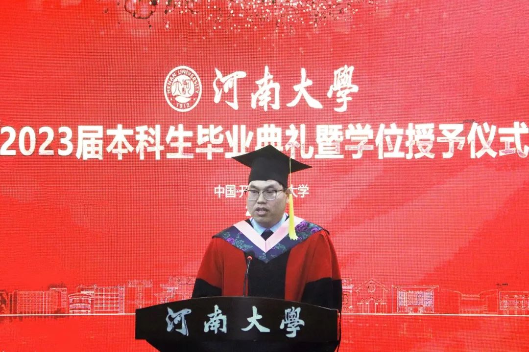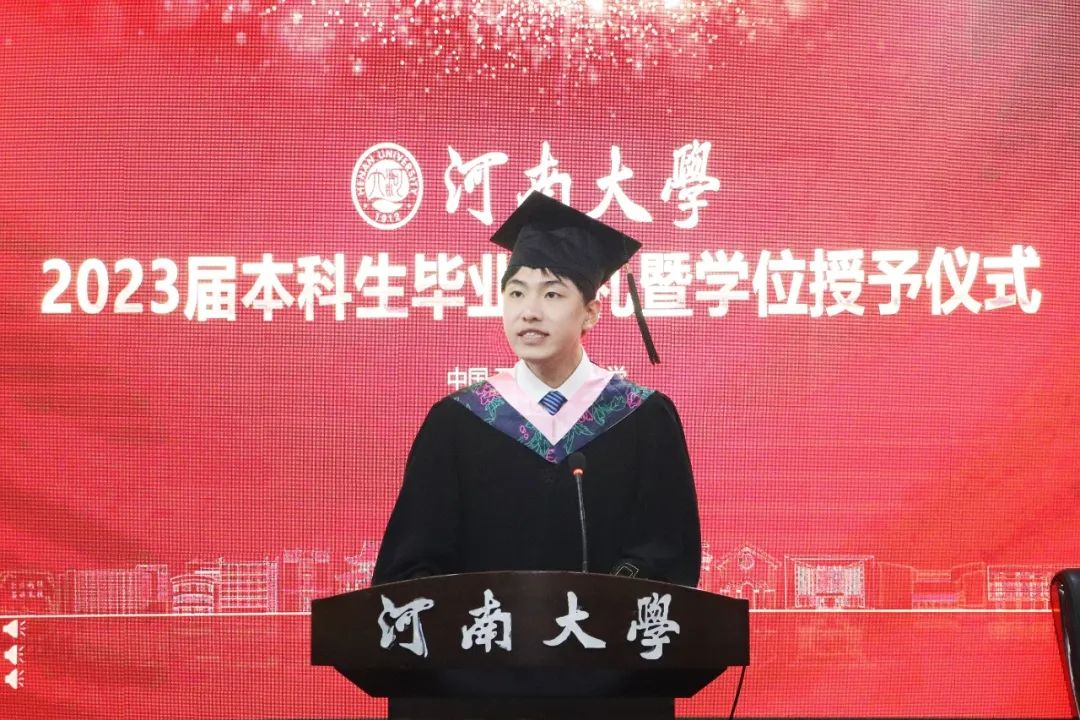 毕业生代表、2019级行政管理专业何俊澈回忆四年的青春答卷,感激过去四年恩师挚友的帮助,感恩当下能力积淀的底气,感召未来责任担当的使命。他表示,未来会带着“铁塔牌”学子的烙印,带着在哲管留下的青春痕迹,带着恩师与同窗的祝福,接续奋斗,在星辰大海中追寻心中所爱。