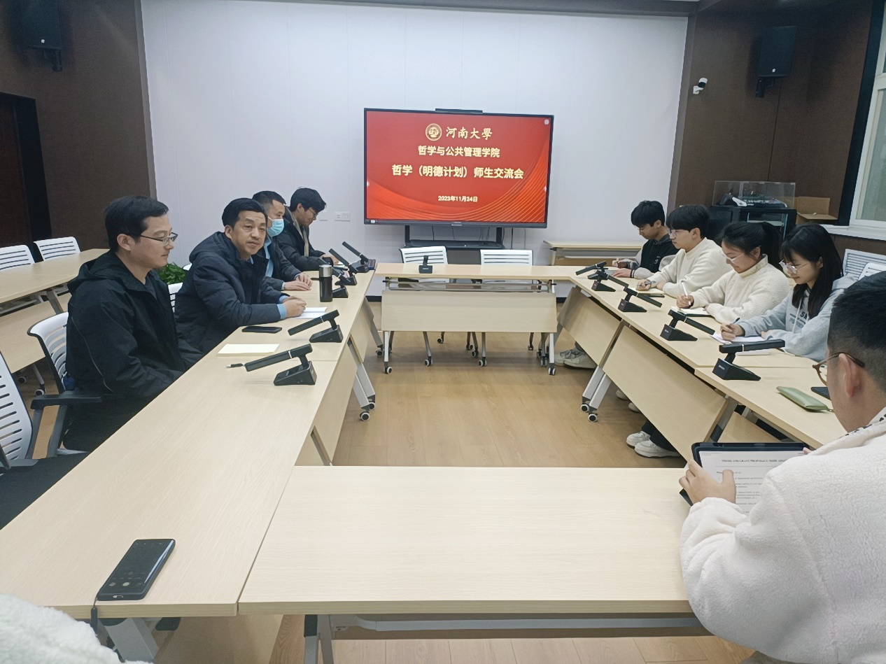 为落实立德树人根本任务,进一步厘清工作思路,提升教学与管理水平,11月24日下午,公司哲学系在第二会议室举办明德班教学管理与发展规划师生交流座谈会。哲学(明德计划)负责人叶平教授,2021级、2022级、2023级明德班班主任孙少飞、刘维邦、冯鹏三位老师及明德班各班班长、团支书与学习委员参加。会议由叶平主持。