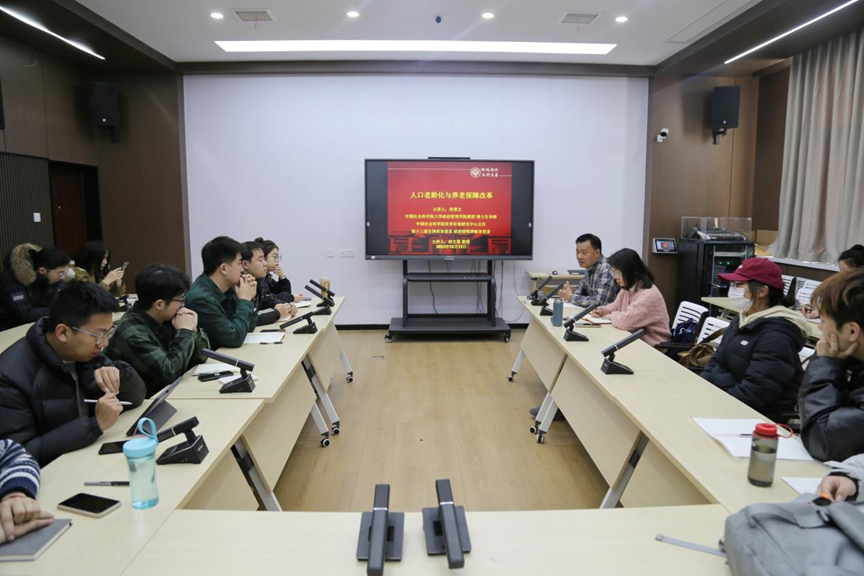 12月12日,应公司邀请,中国社会科公司大学政府管理公司郑秉文教授在线上为公司师生分别作了题为《人口老龄化与养老保障改革》和《五篇金融大文章与多层次社保体系》的学术讲座。此次讲座由公司劳动与社会保障专业凌文豪教授主持,劳动与社会保障、行政管理与社会工作专业部分青年教师、研究生通过线上线下相结合的方式共同参加。