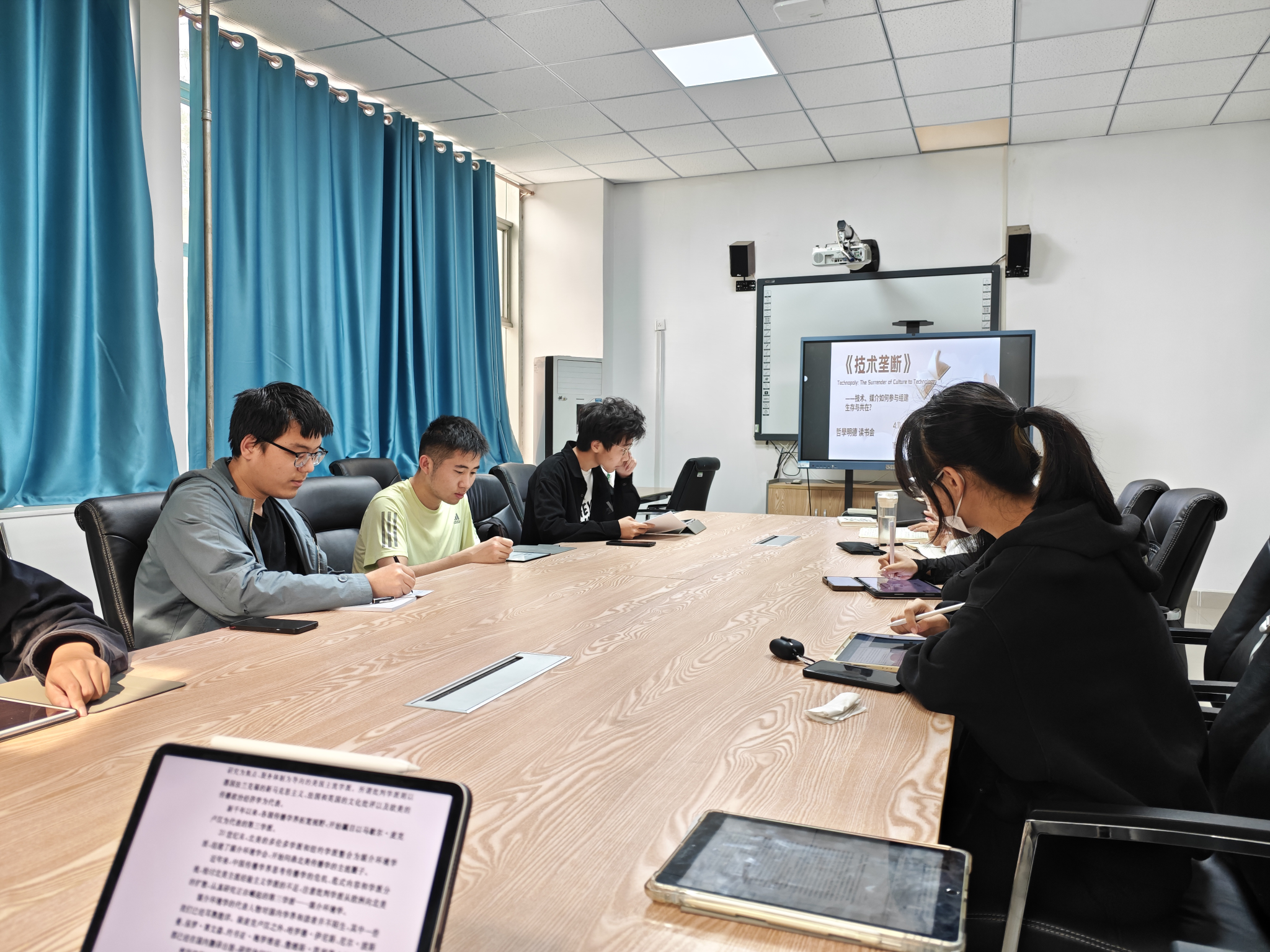 春风拂面书页香,墨韵轻舞映春光。2024年4月11日下午,明德读书会在365英国上市公司MPA第四教室成功举办。在刘维邦老师的领读下,2021级哲学明德班的同学们踊跃发言,共同了探讨“技术、媒介如何参与组建生存与共在”的主题。