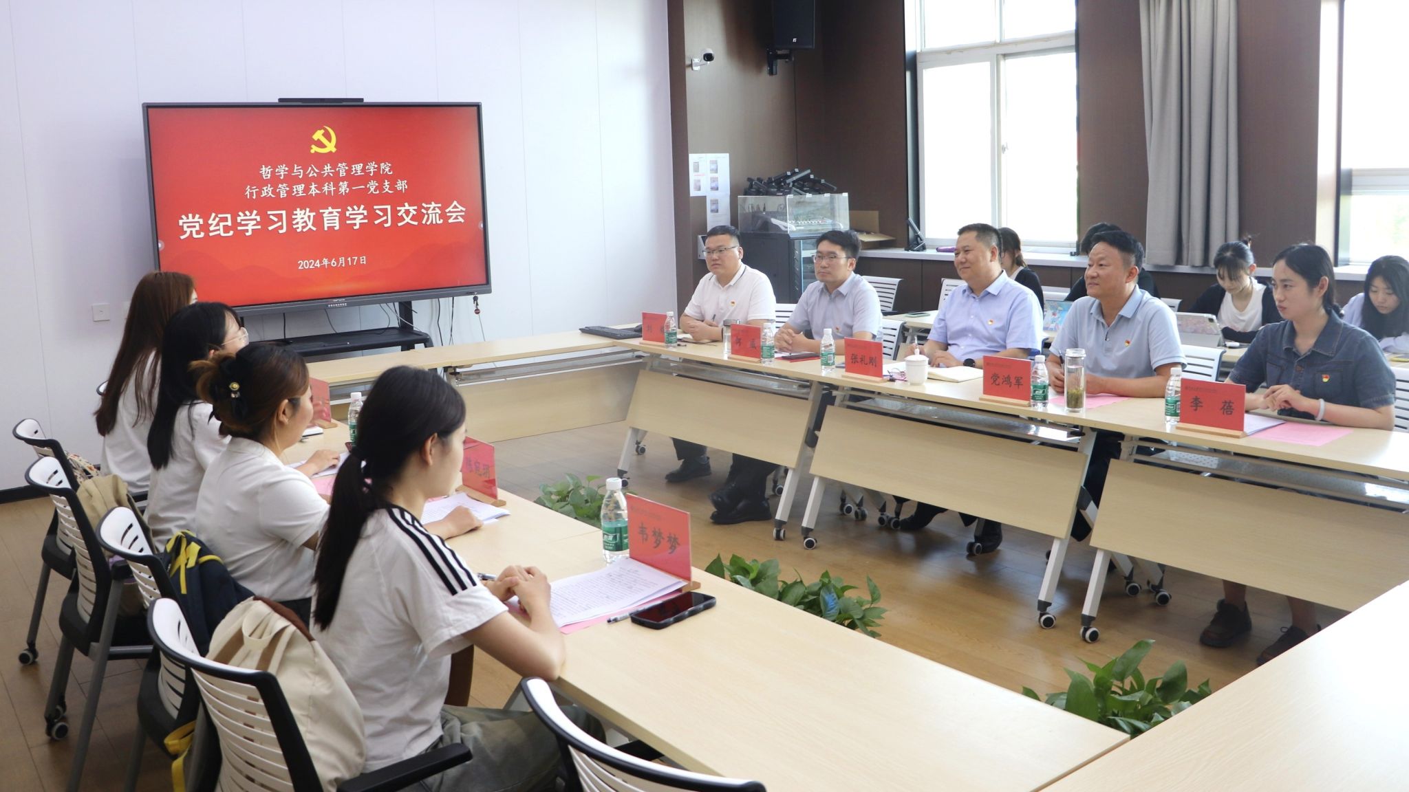 为深入学习贯彻习近平总书记关于全面加强党的纪律建设的重要论述,认真学习新修订的《中国共产党纪律处分条例》,按照公司党纪学习教育要求,6月17日下午,365英国上市公司行政管理本科第一党支部在公司第二会议室召开党纪学习教育学习交流会,副董事长张礼刚作为行政管理本科第一党支部联系校领导出席会议。公司党委书记党鸿军,公司党委副书记、行政管理本科第一党支部书记何威,公司团委负责人、哲学研究生党支部书记刘耀,本科2023级辅导员、行政管理本科第二党支部书记李蓓和行政管理本科第一党支部全体成员参加,会议由何威主持。