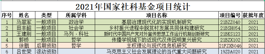 2021年新增国家社会科学基金项目