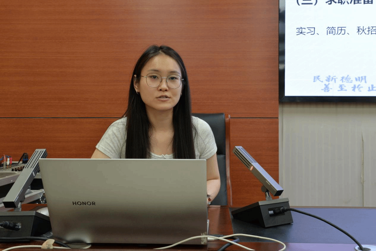 思深方益远,谋定而后动。靳靓学姐从招聘信息的获取、简历的制作与投递、笔试面试的备考等方面分享了企业求职和备考军队文职的经验。她就自身人事实习的经历,讲述了企业面试过程中的常见问题,并建议同学们要熟悉简历中的个人经历、提前实习积累经验、积极准备面试,进而展现个人优势。
